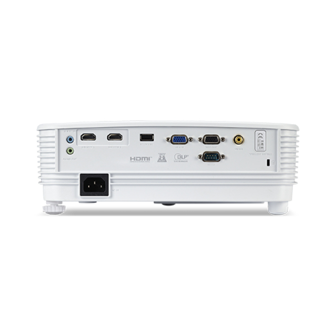 Sí, el Proyector Acer Basic P1157i es compatible con sistemas operativos Windows, MacOS y ChromeOS. Sí, el Proyector Acer Basic P1157i cuenta con capacidad de proyección 3D. La lámpara del Proyector Acer Basic P1157i tiene una vida útil aproximada de 15,000 horas en modo económico. Sí, el Proyector Acer Basic P1157i está diseñado para ser montado en el techo, en la parte trasera o en el frente. Sí, cuenta con un altavoz incorporado de 3W para una experiencia de audio básica. Proyector inteligente No Distancia de proyección del objetivo 1-12 m Brillo de proyector 4500 lúmenes ANSI Tecnología de proyección DLP Resolución original del proyector SVGA (800x600) Razón de contraste (típica) 20000:1 Relación de aspecto nativa 4:3 Número de colores 1,07 billones de colores Corrección vertical de keystone (trapezoide) -40 - 40 ° Tipo de fuente luminosa Lámpara Potencia de la lámpara 203 W Cantidad de lámparas 1 lámpara(s) Intervalo de longitud focal 22 - 24.1 mm Rango de apertura 2.56-22 Relación de alcance 1.96 - 2.15 Full HD No 3D Sí Cantidad de puertos USB 2.0 1 Tipo de serie de interfaz RS-232 Cantidad de puertos VGA (D-Sub) 2 Número de puertos HDMI 2 Entrada de video compuesto 1 Puerto DVI No Smart TV No Ethernet No Wifi Sí Tarjeta de lectura integrada No Nivel de ruido 31 dB Nivel de ruido (modo económico) 26 dB Altavoces incorporados Sí Potencia estimada RMS 3 W Posicionamiento de mercado Presentación Tipo de producto Proyector de alcance estándar Color del producto Blanco Ubicación Techo Pantalla incorporada No Fuente de energía Corriente alterna Consumo de energía (inactivo) 0.5 W Voltaje de entrada AC 120 - 230 V Ancho 299.5 mm Profundidad 220 mm Altura 105.1 mm Peso 2400 g