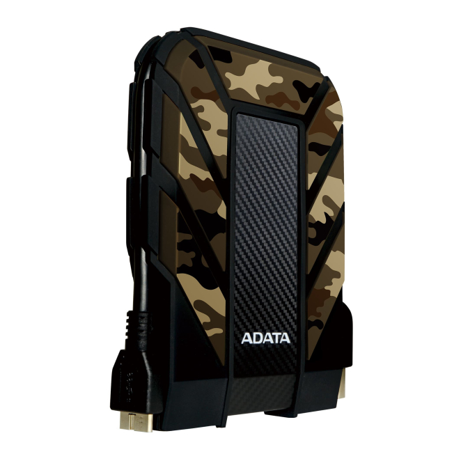 Disco duro externo ADATA HD710M Pro de 1TB con puerto USB Type-A y Micro-USB B 3.2 Gen 1, diseño de camuflaje. SKU AHD710MP-1TU31-CCF