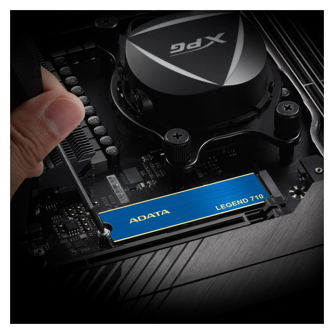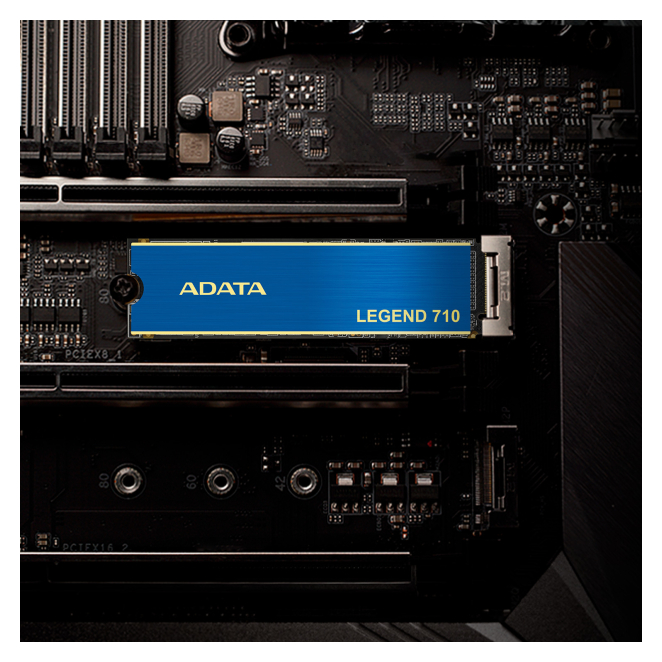 Disco duro ADATA LEGEND 710 con capacidad de 2 TB, interfaz M.2 PCI Express 3.0 y tecnología NVMe 3D NAND. SKU: ALEG-710-2TCS