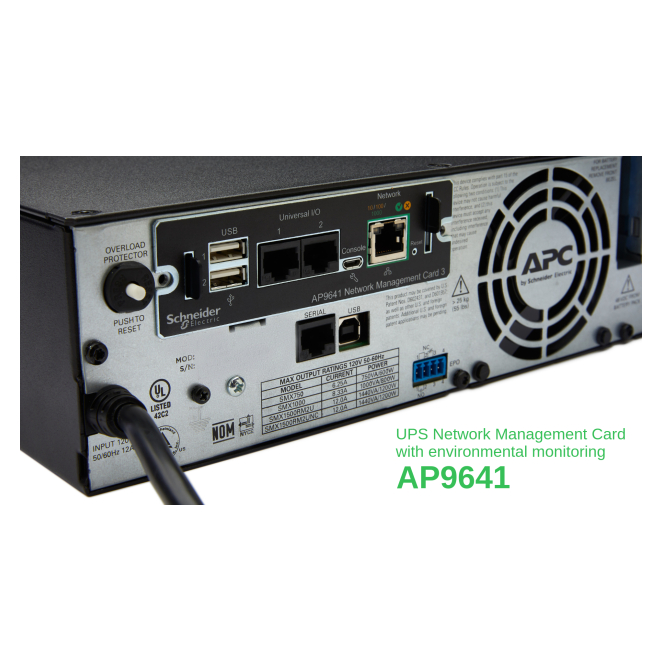 Imagen de la tarjeta de gestión de red APC con PowerChute para sistemas UPS, SKU AP9641