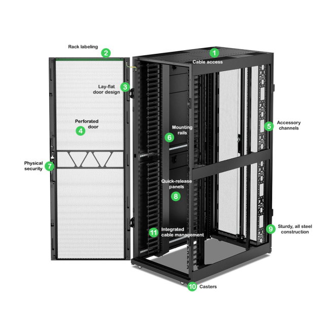 - Capacidad amplia de 52U: Este rack permite almacenar una gran cantidad de equipos de manera organizada y accesible, mejorando la eficiencia operativa de tu centro de datos.