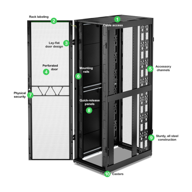 El APC AR3358B2 tiene una capacidad de 52U, lo que permite alojar una gran cantidad de equipos de red y servidores.