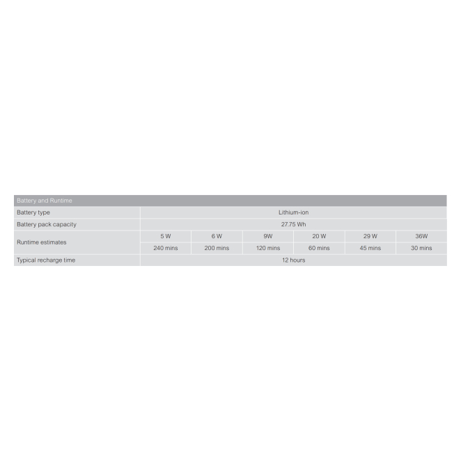 - Tecnología de batería avanzada: Batería de ión de litio con tiempo de recarga rápida