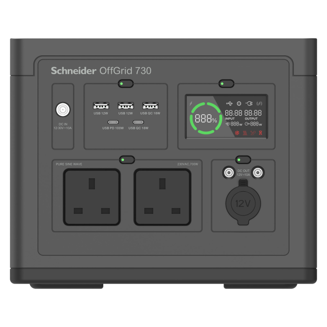 Adquirir la APC PPS730-UK estación de energía portátil es una decisión inteligente debido a varias razones: Con 738Wh, podrás disfrutar de una fuente de energía duradera y fiable, ideal para cualquier situación. Dispone de múltiples opciones de carga, incluyendo puertos USB, salidas AC y un encendedor, permitiéndote cargar una gran variedad de dispositivos. Gracias a su diseño compacto y ligera estructura, es fácil de transportar a cualquier lugar. Facilita el monitoreo del estado de la batería y otras funciones de manera intuitiva. Está diseñada para soportar condiciones difíciles, haciendo que sea una opción confiable tanto en interiores como en exteriores. Aquí tienes algunas preguntas frecuentes sobre la APC PPS730-UK estación de energía portátil para ayudarte a tomar una decisión informada. La capacidad de la batería es de 738Wh, lo que garantiza una prolongada duración de carga y fiabilidad. El dispositivo cuenta con 2 salidas AC, permitiendo la conexión de varios dispositivos simultáneamente. Sí, con un peso de solo 6,4 kg y un asa de transporte incorporada, es extremadamente portátil y conveniente para viajes. Cuenta con 3 puertos USB Tipo A y 2 puertos USB Tipo C, además de incluir una opción de carga rápida. Sí, su diseño robusto permite su uso en una variedad de entornos, proporcionándote energía confiable tanto en interiores como al aire libre. Material de la carcasa Plástico Color del producto Negro, Verde Pantalla incorporada Sí Tipo de visualizador LCD Indicadores LED Si Tipo de salida AC Tipo G (BS 1363) Puerto USB Sí Tecnología de batería Ión de litio Forma de onda Onda sinusoidal pura Voltaje de entrada 190 - 265 V Ancho 198.1 mm Profundidad 203.2 mm Altura 248.9 mm Peso 6400 g Intervalo de temperatura de almacenaje -20-70 °C Ancho del paquete 238 mm Profundidad del paquete 322 mm Altura del paquete 327 mm Peso del paquete 7100 g Cables incluidos Corriente alterna, Encendedor de cigarrillos