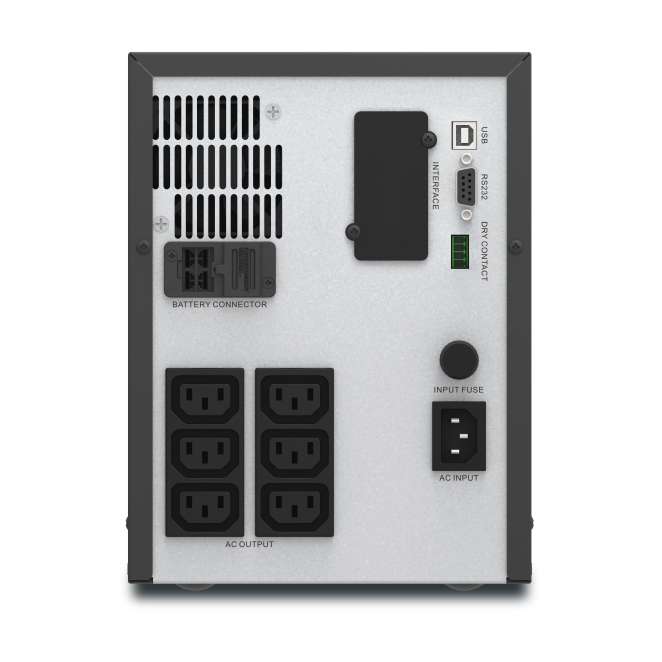Los usuarios del APC Easy UPS SMV experimentarán una usabilidad sencilla y una instalación directa gracias al diseño en torre y el display LCD intuitivo. La comodidad de poder monitorizar el estado del UPS a través del display y las alarmas audibles para cambios a la batería, batería baja o sobrecarga garantizan que siempre estén informados sobre el estado del sistema. La sistema de alimentación ininterrumpida permite a los usuarios mantener la productividad incluso durante interrupciones eléctricas, asegurando una transición sin problemas a la batería.