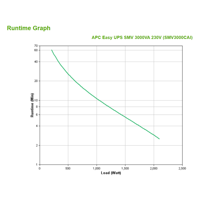 El APC Easy UPS SMV tiene una capacidad de potencia de salida de 3 kVA y una potencia de salida de 2100 W.