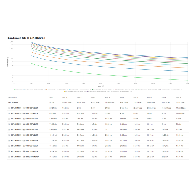 El APC SRTL5KRM2UI ofrece un tiempo típico de respaldo de 5.25 minutos a carga completa.