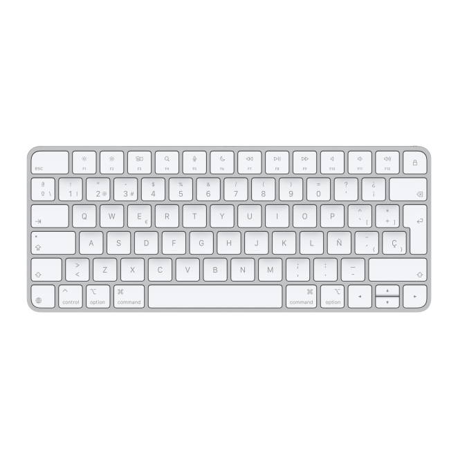 Teclado Apple Magic blanco en español con conexión USB y Bluetooth, SKU: MXCL3Y/A. Teclado QWERTY para múltiples dispositivos.
