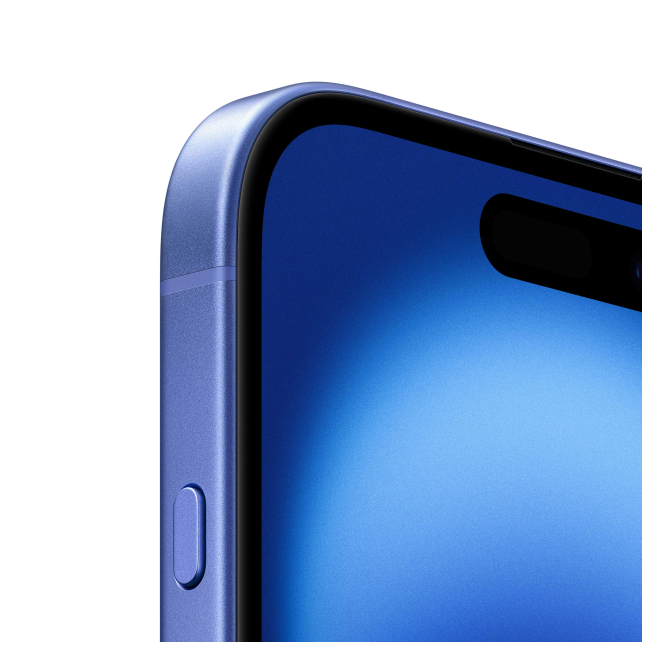 Imagen del Apple iPhone 16 en color azul, pantalla de 6.1 pulgadas, SIM doble, iOS 18, 5G, USB Tipo C y 128 GB de almacenamiento. SKU MYEC3QL/A?ES