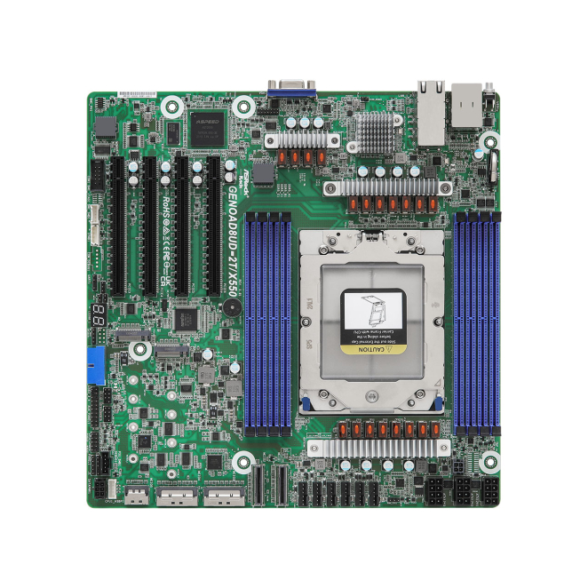 La Asrock GENOAD8UD-2T/X550 es compatible con procesadores AMD, en particular con el socket SP5 y los modelos EPYC 9004.