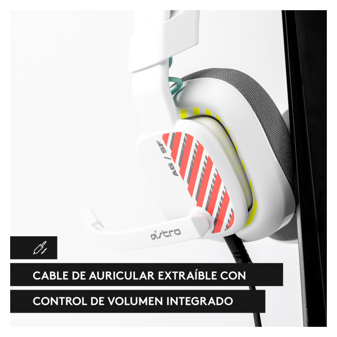 Sí, los auriculares ASTRO Gaming A10 son compatibles con PC, Mac, Xbox One, Xbox Series X, Xbox Series S, PlayStation 4 y PlayStation 5. El micrófono de los auriculares ASTRO Gaming A10 se silencia fácilmente volteándolo hacia arriba. Sí, tanto las almohadillas de las copas como las de la diadema son sustituibles, lo que añade durabilidad a los auriculares. Los auriculares ASTRO Gaming A10 utilizan una conexión alámbrica con un conector de 3,5 mm. Sí, los auriculares ASTRO Gaming A10 están diseñados ergonómicamente con almohadillas circumaurales y diadema ajustable para ofrecer máxima comodidad durante largas sesiones de juego. Tipo de producto Auriculares Estilo de uso Diadema Uso recomendado Juego Color del producto Blanco Tipo de controles Caja de control en cable Diadema ajustable Sí Tecnología de conectividad Alámbrico Audifonos Circumaural Frecuencia de auricular 20-20000 Hz Obstrucción 24 Ω Tipo de imán Neodimio Tipo de micrófono Boom Tipo de dirección de micrófono Unidireccional Peso 246 g Ancho del paquete 94 mm Profundidad del paquete 227 mm Altura del paquete 193 mm Peso del paquete 560 g Tipo de embalaje Caja Cantidad 1 Cables incluidos Audio (3ˌ5mm) Conector de 3,5 mm Sí Código de Sistema de Armomización (SA) 85183000 Ancho de la caja principal 236 mm Longitud de la caja 388 mm Alto de la caja principal 210 mm Peso del envase completo 2550 g