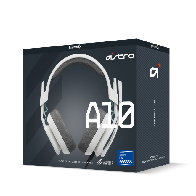 Auriculares ASTRO Gaming A10, alámbricos con diadema, color blanco, SKU 939-002064