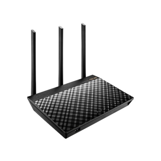 El ASUS RT-AC66U B1 es un destacado router inalámbrico ASUS con conectividad de Gigabit Ethernet y una operación de doble banda de 2.4 GHz y 5 GHz. Este potente router, ideal para el hogar y la oficina, ofrece una tasa de transferencia de datos máxima de 1750 Mbit/s y un soporte extensivo para estándares de seguridad, incluyendo WPA y WPA2. Con un diseño elegante en color negro, el ASUS RT-AC66U B1 garantiza una conectividad estable y una cobertura superior, gracias a sus tres antenas externas y compatibilidad con tecnologías avanzadas como DNS dinámico y Cortafuegos stateful.