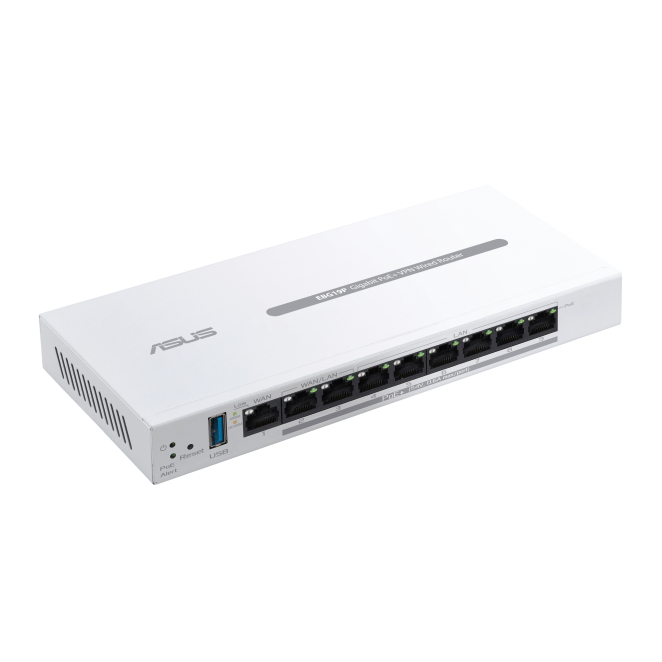 Imagen del router ASUS ExpertWiFi EBG19P con capacidad de Gigabit Ethernet y color blanco, SKU 90IG08C0-MO3B00