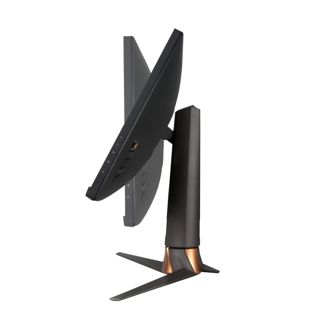Asus ROG Swift PG27UQR vista lateral mostrando ajuste de altura y ángulos