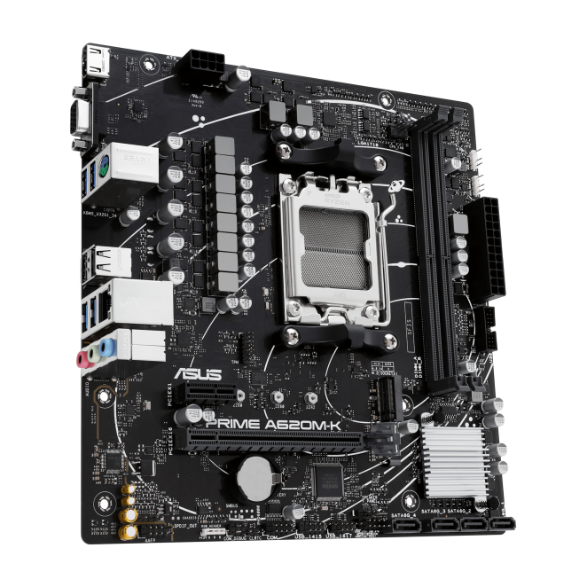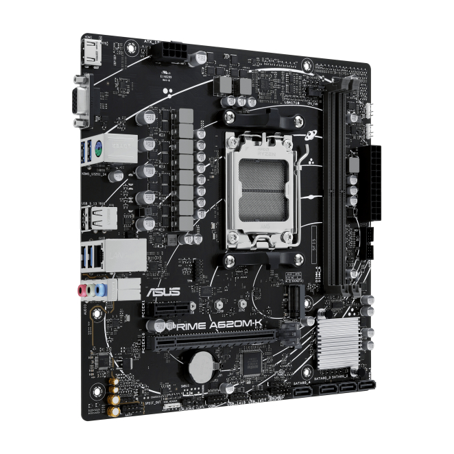 Tarjeta madre ASUS PRIME A620M-K con chipset AMD A620 y zócalo AM5, SKU 90MB1F40-M0EAY0