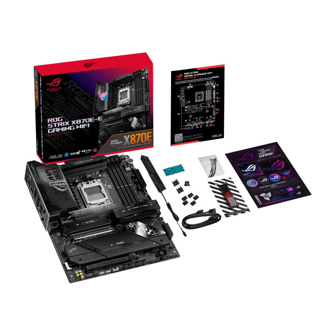 Placa base ASUS ROG STRIX X870E-E Gaming WiFi con chipset AMD X870E, zócalo AM5 y formato ATX, SKU 90MB1IB0-M0EAY0