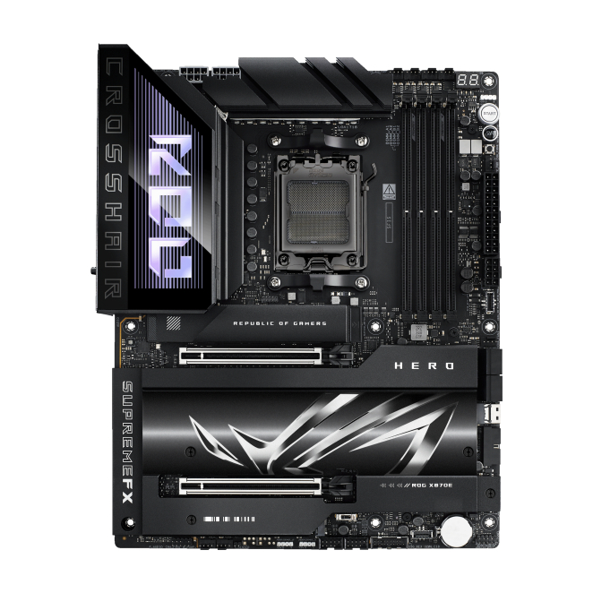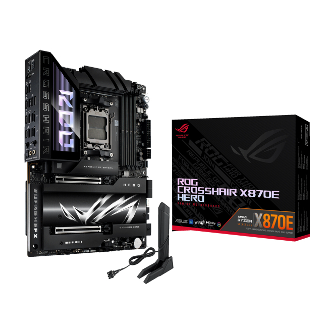 ASUS ROG CROSSHAIR X870E HERO AMD X870E motherboard, socket AM5, ATX form factor, SKU 90MB1IE0-M0EAY0 Stock disponible en nuestros almacenes Financiado desde: 41,13 € /mes Solicita información en caso de necesitar envío urgente. Métodos de pago: ASUS ROG Crosshair X870E Hero AMD X870E Zócalo AM5 ATX
