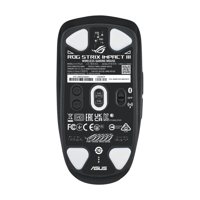 Aquí encontrarás respuestas a las preguntas más comunes sobre el ASUS ROG Strix Impact III Wireless, garantizando una compra informada: El ASUS ROG Strix Impact III Wireless tiene una autonomía de hasta 450 horas, dependiendo del uso y configuración de iluminación. Sí, el diseño ambidextro del ASUS ROG Strix Impact III Wireless lo hace perfecto para jugadores tanto diestros como zurdos. Sí, el ASUS ROG Strix Impact III Wireless tiene compatibilidad multidispositivo, funcionando tanto con RF Wireless como con Bluetooth. Sí, el ratón cuenta con iluminación de color Multi RGB que se puede personalizar según tus preferencias. El ASUS ROG Strix Impact III Wireless cuenta con 6 botones programables para un control total en cada juego. Utilizar con Juego Número de ruedas de desplazamiento 1 Direcciones de desplazamiento Vertical Interfaz del dispositivo RF Wireless + Bluetooth Tecnología de detección de movimientos Óptico Resolución de movimiento 36000 DPI Tipo de botones Botones presionados Tipo de desplazamiento Rueda Cantidad de botones 6 Personalizable resolución movimiento Sí Velocidad de seguimiento del ratón 650 ips Aceleración (máx.) 50 G Frecuencia de sondeo 1000 Hz Factor de forma Ambidextro Color del producto Negro Iluminación Sí Iluminación de color Multi Fuente de energía Baterías Recargable No Autonomía 450 h Tipo de batería AA/AAA Tecnología de batería Alcalino Sistema operativo Windows soportado Windows 10, Windows 11 Ancho 62 mm Peso 66.8 g Profundidad 120 mm Altura 39 mm Cantidad por paquete 1 pieza(s) Ancho del paquete 158 mm Profundidad del paquete 109 mm Altura del paquete 73 mm Peso del paquete 220 g Receptor incluido Sí Pilas incluidas Sí Adaptador AC incluido No