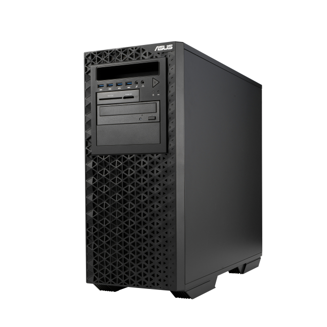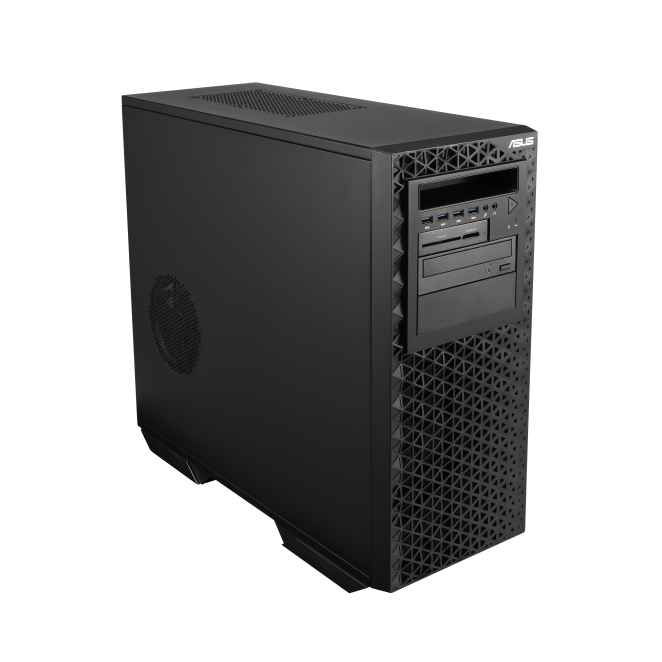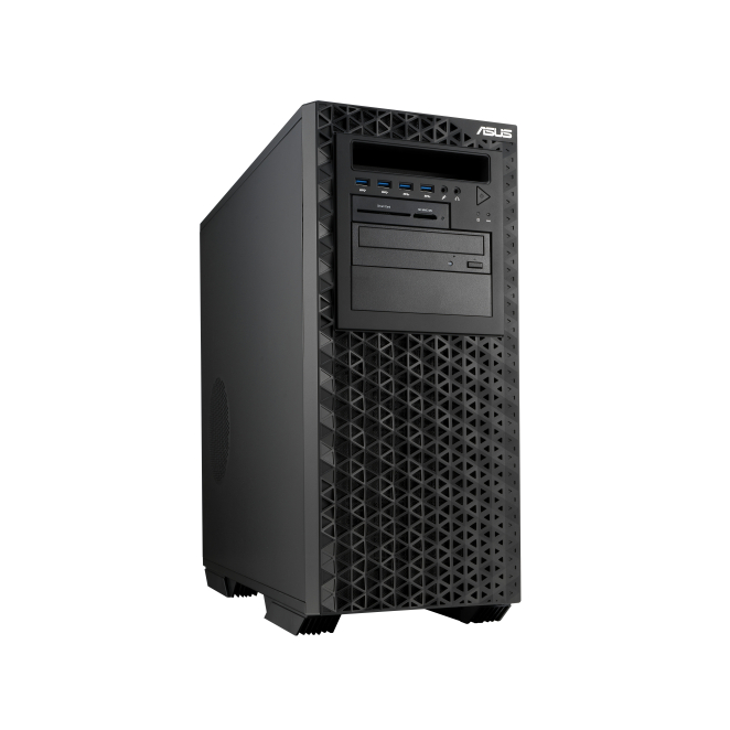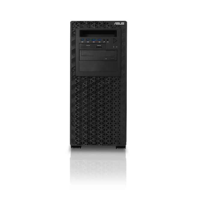 Vista frontal del ASUS Pro E800 G4 barebone en color negro, equipado con chipset Intel® C621. SKU: 90SF0111-M00540