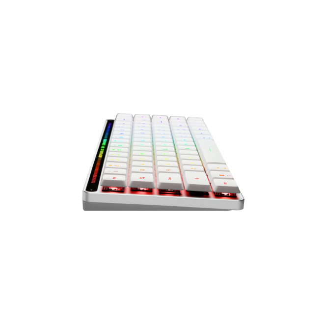Su diseño al 65% y retroiluminación LED RGB multicolor no sólo ahorran espacio en tu escritorio, sino que también añaden un toque estético moderno.
