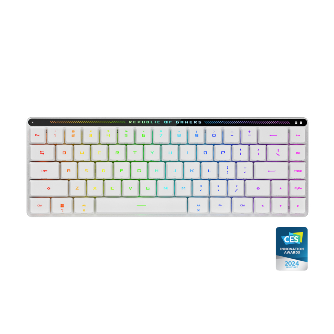 Teclado para juego ASUS blanco con conexión USB, RF Wireless y Bluetooth. SKU: 90MP03EC-BKSA10