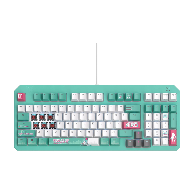 El ASUS TUF Gaming K3 Gen II Hatsune Miku Edition es el teclado perfecto para los entusiastas de los videojuegos y aficionados de Hatsune Miku. Este teclado gaming presenta un diseño compacto con 97 teclas, interruptores RGB ópticos-mecánicos, y una estética visual que combina el cibernético estilo de TUF Gaming con los colores icónicos verde azulado y rosa de Hatsune Miku. Además, cuenta con una estructura robusta, una impermeabilidad IP57, y retroiluminación LED RGB compatible con Aura Sync para personalizar tu experiencia de gaming. Si estás buscando un teclado gaming de alta calidad y edición especial, el ASUS TUF Gaming K3 Gen II Hatsune Miku Edition es tu mejor elección.