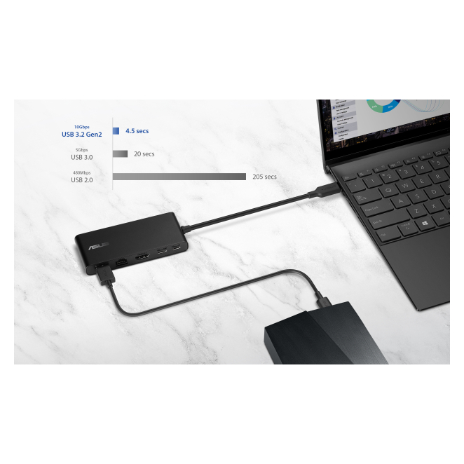 El ASUS Dual 4K USB-C Dock DC201 es perfecto para profesionales que necesitan una solución de conectividad robusta y eficiente, como diseñadores gráficos, editores de video y programadores que requieren el uso de múltiples monitores. También es ideal para ejecutivos y profesionales de ventas que necesitan realizar presentaciones en alta definición. Inclusive en un entorno doméstico, este dock alámbrico 4K ayuda a estudiantes y aficionados a mejorar su productividad, facilitando la conexión de dispositivos adicionales como impresoras, teclados, y ratones. Sin importar tu perfil, mejorarás significativamente tu rendimiento con esta estación de acoplamiento multifuncional. La usabilidad del ASUS Dual 4K USB-C Dock DC201 es excepcional, permitiendo conectar y desconectar dispositivos de forma rápida y sin complicaciones. Su robusto diseño garantiza durabilidad mientras que su compacta estructura facilita su transporte. La conectividad es intuitiva y sin interrupciones gracias a su interfaz USB 3.2 Gen 2 Type-C, que ofrece una velocidad de transferencia de datos de hasta 10 Gbps. Además, el suministro de energía USB de hasta 100W asegura que tus dispositivos se mantendrán cargados y listos para usar en todo momento.