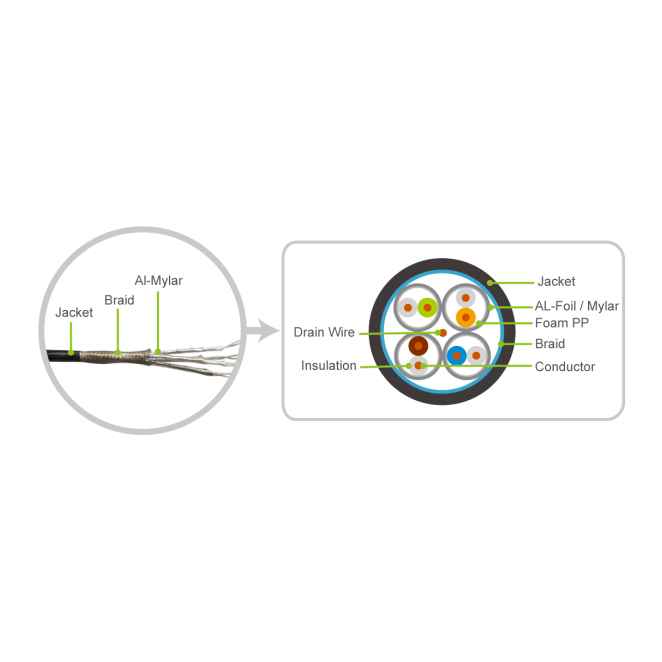 El blindaje S/FTP reduce significativamente la interferencia electromagnética, garantizando una señal clara y estable.