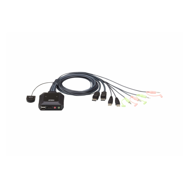 ATEN Switch KVM formato cable DisplayPort USB de 2 puertos selector remoto de puerto