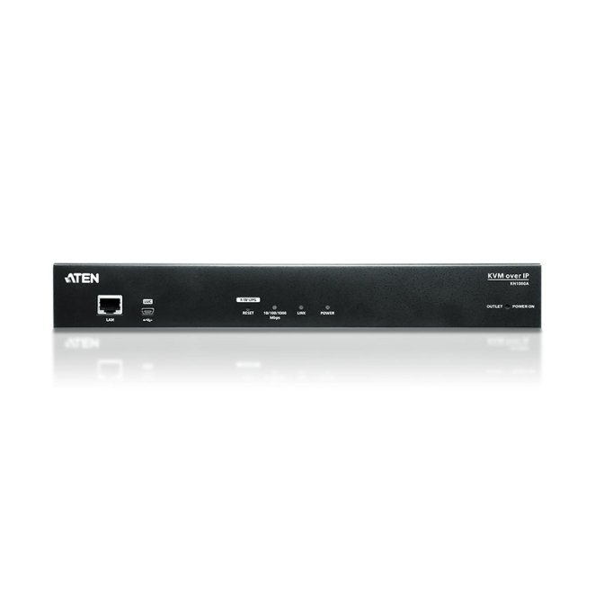Unidad de control KVM por IP VGA ATEN de un puerto con resolución 1920 x 1200, acceso compartido desde consolas local y remota. SKU KN1000A-AX-G
