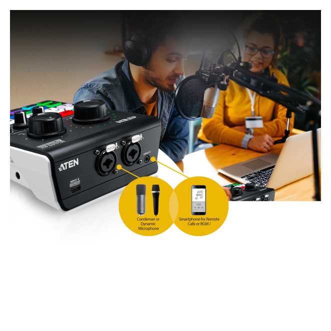 ATEN Mezclador de audio para pódcast con IA | MicLIVE de 6 canales
