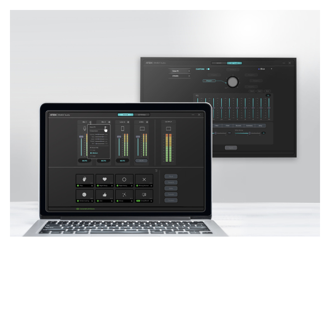 Usar el ATEN Mezclador de audio para pódcast con IA es una experiencia fluida y gratificante. Su diseño intuitivo simplifica complejas tareas de ingeniería de audio en simples toques, permitiendo a los usuarios concentrarse en la creación de contenido sin preocuparse por los detalles técnicos. La interfaz de usuario es fácil de entender y permite ajustes rápidos en tiempo real. Además, las dos salidas de auriculares permiten la monitorización independiente por dos personas, lo cual es excelente para trabajos en equipo. Su compatibilidad con la aplicación OnAir Audio ofrece un control ilimitado sobre los parámetros DSP, asegurando que cada grabación sea perfecta.