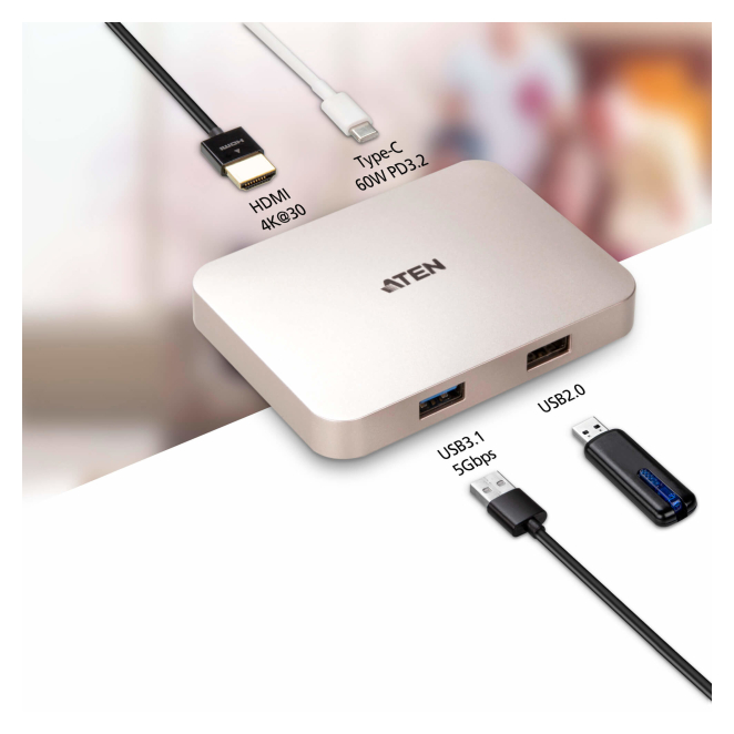 ATEN Docking station ultracompacta USB-C con power pass-through