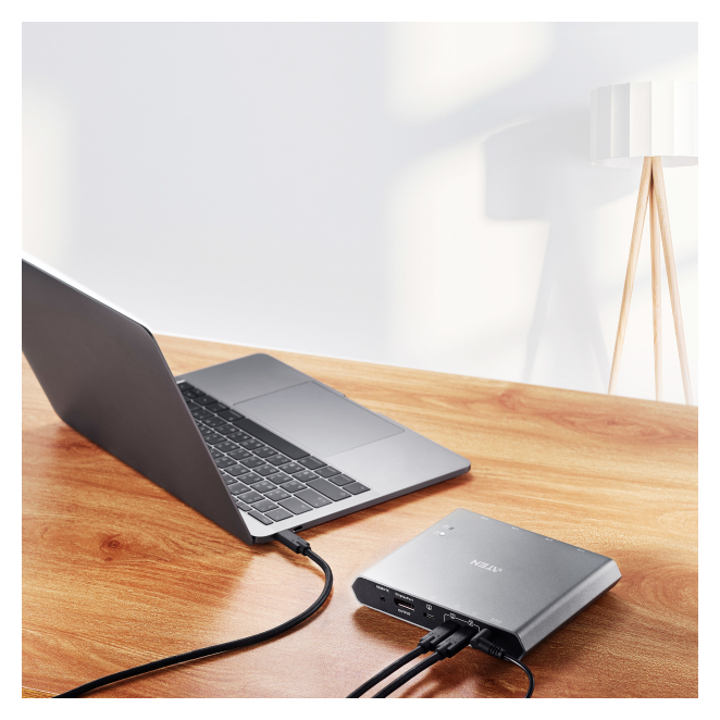 ATEN Conmutador KVM 4K DisplayPort USB-C de 2 puertos con paso de corriente
