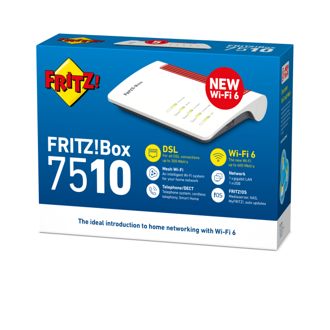AVM FRITZ!Box 7510 INT router inalámbrico, blanco, conexión Gigabit Ethernet, banda única (2,4 GHz). SKU: 20002997