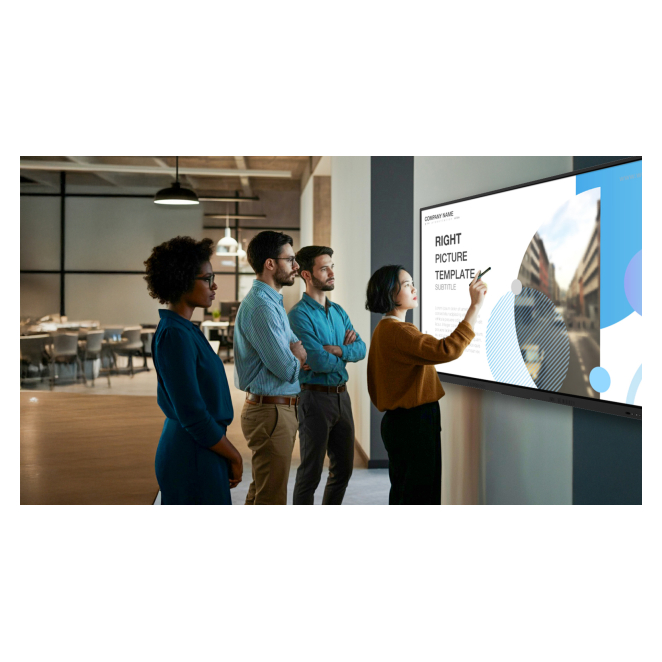 La Avocor AVE-6550 pizarra blanca touch ofrece una experiencia de usuario sencilla e intuitiva. La pantalla de alta definición garantiza una visibilidad clara desde cualquier ángulo, mientras que su respuesta táctil inmediata permite una escritura fluida y natural. La Avocor AVE-6550 está diseñada para una usabilidad excepcional, facilitando el acceso a herramientas digitales que mejoran la productividad y el rendimiento en distintas actividades colaborativas.
