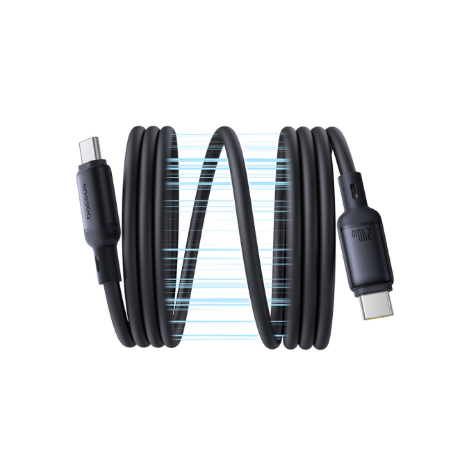 Fabricado con policarbonato y silicona, el cable USB-C Baseus es resistente y está diseñado para durar.