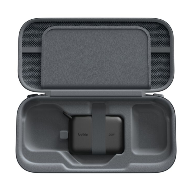 Belkin ENA001hqCH-V2 estuche de viaje para Nintendo, hecho de poliéster y terciopelo de color carbón vegetal, con compartimiento de malla