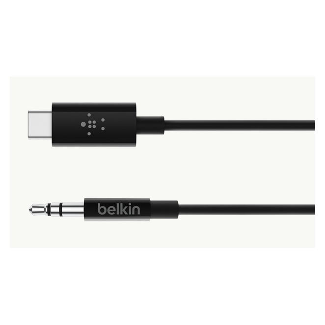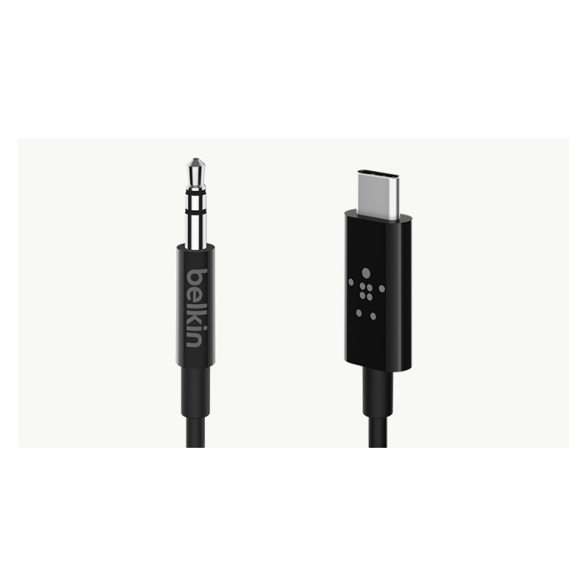 Cable de audio Belkin de 1.8 metros con conector de 3.5mm y USB Tipo C, color negro, SKU F7U079BT06-BLK