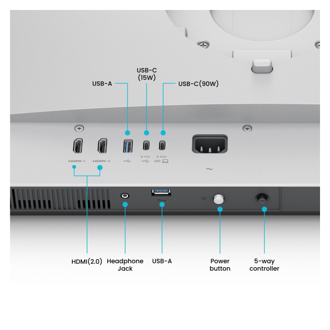 El monitor BenQ MA270U tiene un puerto USB Type-C y un puerto USB descendente de tipo A, ofreciendo flexibilidad para conectar diversos dispositivos.