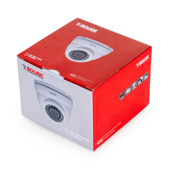 Bolide BC1209IRODVAM/28/AHQ cámara de vigilancia con resolución 1920 x 1080 pixeles, ideal para interior y exterior, instalación en techo o pared.