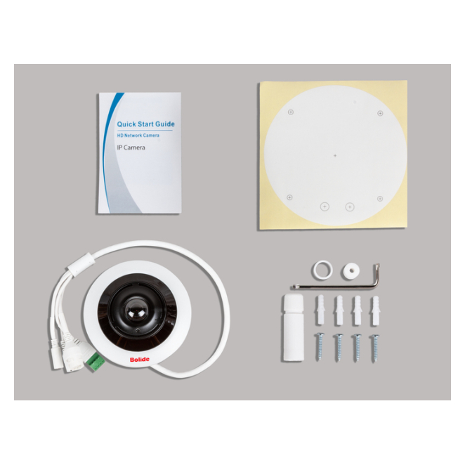 La Bolide BN1908FE/NDAA cámara de vigilancia esférica es una inversión que vale cada centavo debido a sus múltiples características avanzadas y facilidad de uso. Con 4000 x 3000 píxeles de resolución, esta cámara ofrece una calidad de imagen excepcional. Monitorea en cualquier condición de iluminación con su visión nocturna de hasta 10 metros. Diseñada para ser montada en techos, esta cámara cubre amplias áreas sin ser invasiva. Gracias a sus altavoces y micrófonos integrados, puedes comunicarte fácilmente a través de la cámara. Compatible con múltiples protocolos de red y fácil de instalar con tecnología Plug and Play. A continuación, respondemos algunas de las preguntas más comunes sobre la Bolide BN1908FE/NDAA cámara de vigilancia. No, la Bolide BN1908FE/NDAA está diseñada específicamente para uso en interiores. La cámara admite tarjetas de memoria con un tamaño máximo de 256 GB. No, la Bolide BN1908FE/NDAA sólo admite conexión alámbrica a través de Ethernet. Sí, la cámara está equipada con altavoces y micrófonos integrados para permitir la comunicación bidireccional. La Bolide BN1908FE/NDAA tiene una distancia de visión nocturna efectiva de hasta 10 metros. Tipo Cámara de seguridad IP Colocación soportada Interior Tecnología de conectividad Alámbrico Amplio rango dinámico (WDR) Sí Modo día / noche Sí Filtro de corte infrarrojo Sí Factor de forma Esférico Tipo de montaje Techo Color del producto Blanco Código IP (International Protection) IP67 Iluminación mínima 0 lx Número de sensores 1 Tamaño del sensor óptico 25,4 / 2,3 " Tipo de sensor CMOS Apertura máxima 2 Distancia focal fija 1.6 mm Visión nocturna Sí Distancia de visión nocturna 10 m Tipo de LED IR Máxima resolución 4000 x 3000 Pixeles Total de megapixeles 12 MP Formatos de compresión de video H.264, H.265 Velocidad de cuadro 25 pps Formatos gráficos soportados 1080 x 1080, 1280 x 960, 2560 x 2560, 3000 x 3000, 4000 x 3000, 640 x 480 (VGA), 720 x 720 Ethernet Sí Protocolos de red compatibles TCP/IP, HTTP, DHCP, DNS, DDNS, RTP/RTSP, PPPoE, SMTP, NTP, UPnP, SNMP, HTTPS, FTP Wifi No Bluetooth No HDD incorporado No Tarjeta de lectura integrada Sí Tarjetas de memoria compatibles MicroSD (TransFlash) Tamaño máximo de tarjeta de memoria 256 GB Ethernet LAN (RJ-45) cantidad de puertos 1 Alimentación CC, PoE Consumo energético 3.8 W Consumo de energía (max) 9.6 W Voltaje de salida CC 12 Peso 400 g Altura 55 mm Número de cámaras 1 Kit de montaje Sí