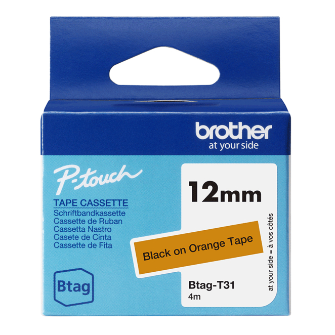 Brother BTAG-T31 cinta para impresora de etiquetas, negro sobre naranja, SKU BTAGT31, ideal para etiquetado industrial