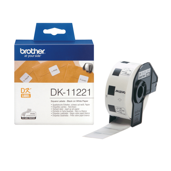 Cinta para impresora de etiquetas Brother negro sobre blanco, modelo DK-11221, ideal para etiquetas nítidas y duraderas Este producto se puede comprar bajo demanda. Financiado desde: 0,63 € /mes Solicita información en caso de necesitar envío urgente. Métodos de pago: Brother DK-11221 cinta para impresora de etiquetas Negro sobre blanco La Brother DK-11221 cinta para impresora de etiquetas Negro sobre blanco es una solución ideal para todas tus necesidades de etiquetado. Este rollo de etiquetas precortadas está diseñado específicamente para ofrecer impresiones de alta calidad y duraderas, con un tamaño uniforme de 23×23 mm para cada etiqueta. Perfecto para etiquetar archivos, carpetas, envíos y almacenamiento, es compatible con una amplia gama de impresoras de la marca Brother. La Brother DK-11221 cinta garantiza una impresión clara y precisa, junto con un adhesivo resistente que asegura que tus etiquetas permanezcan en su lugar.