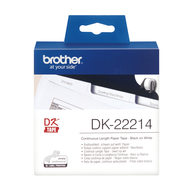 Brother DK-22214 cinta para impresora de etiquetas negro sobre blanco, duradera y versátil, SKU DK22214