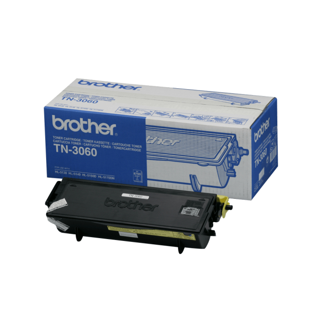 El cartucho de tóner Brother TN-3060 ofrece un rendimiento de hasta 6,700 páginas con una cobertura del 5%.