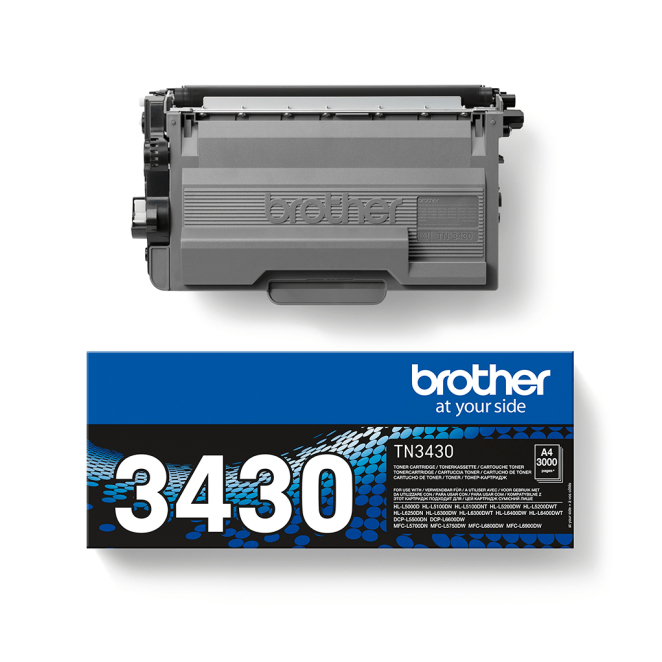 El Brother TN-3430 es compatible con diversas impresoras Brother, incluyendo los modelos HL-L5000D, HL-L5100DN, HL-L5200DW, HL-L6300DW, HL-L6400DW, HL-L6400DWT, DCP-L5500DN, DCP-L6600DW, MFC-L6800DW, MFC-L6900DW, y MFC-L6900DWT.
