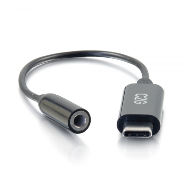 Cable de teléfono móvil C2G, color negro, de 0,09 m de longitud, con conector USB-C a 3,5 mm, SKU 54426