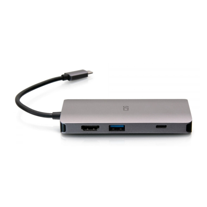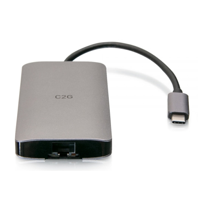 C2G Mini base USB-C® 8 en 1 con alimentación HDMI, 2 USB-A, Ethernet, lector de tarjeta SD y USB-C de hasta 100 W – 4K 30 Hz